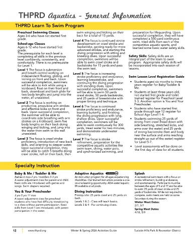 back, steamboat and back glide for will be able to swim 50 yards • Students at least three years old,