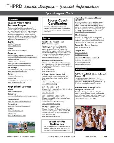 Tualatin Valley Youth Lacrosse League is a coaching, go to tualatinhillsjuniorsoccerleague. not offer registration for your high school, go