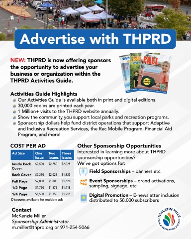 NEW: THPRD is now offering sponsors 2025 Activities Guide v i ti e s G ui R